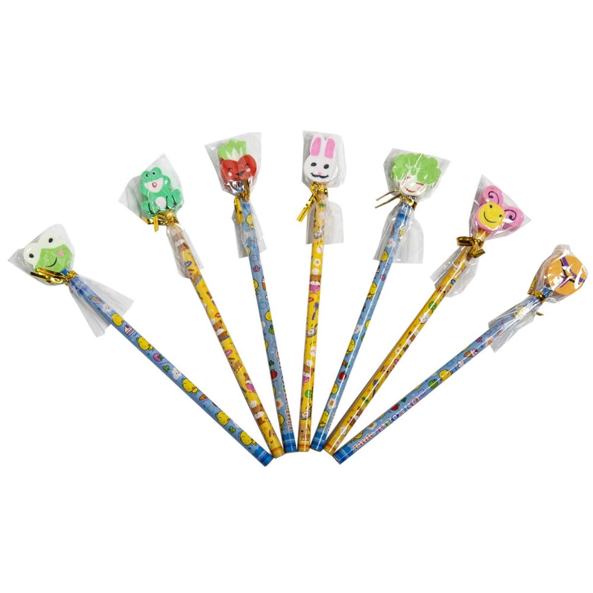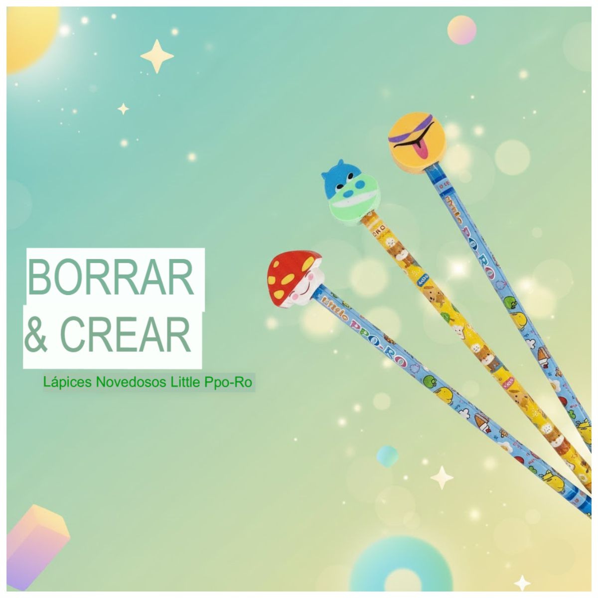 Gomas Temáticas Divertidas: Cada lápiz incluye una goma superior con formas atractivas como ranitas, conejos y caritas felices que fascinan a los niños.