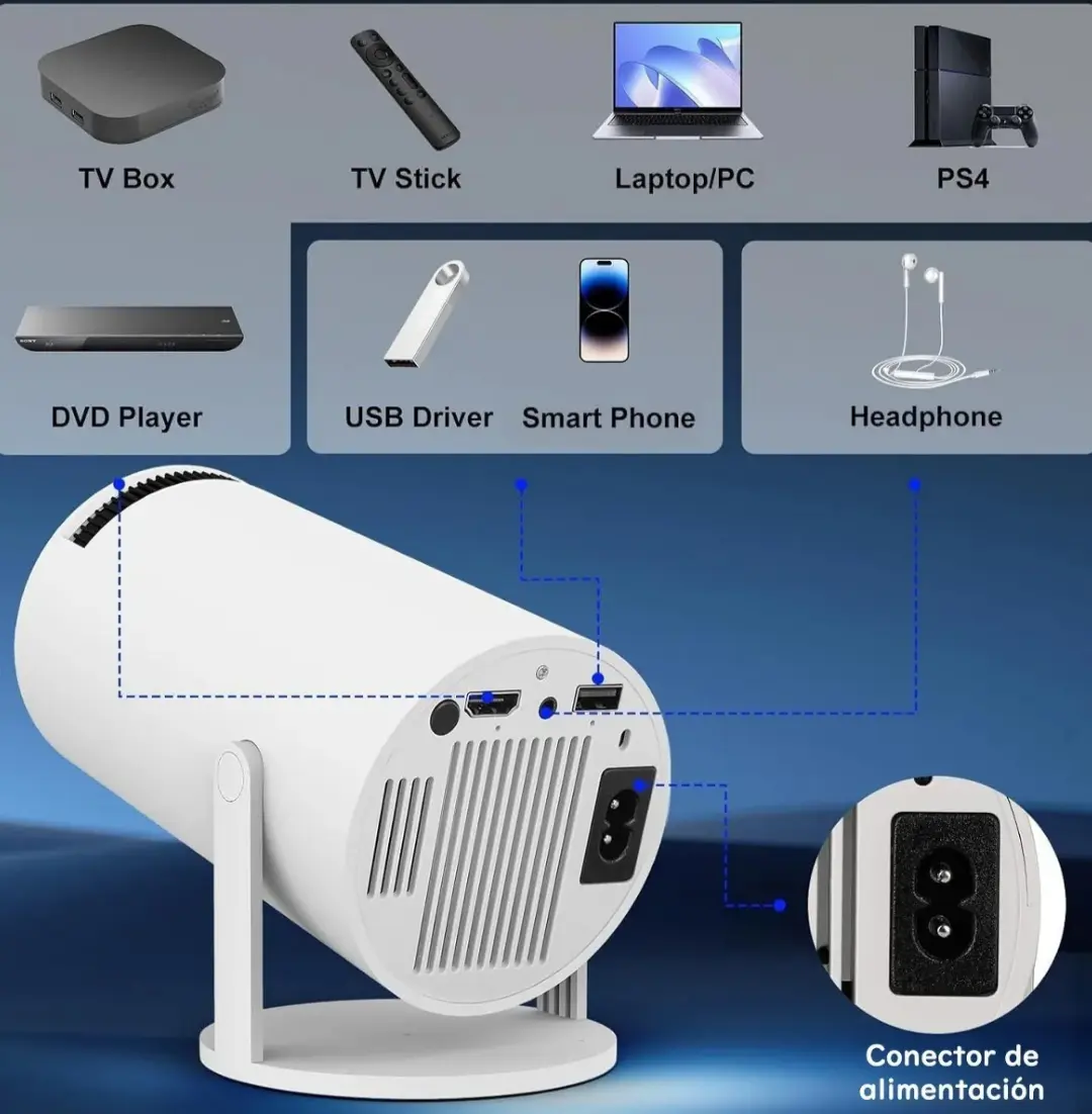 🔥 Imagen HD ultra nítida → Disfrutá tus contenidos como en el cine.🌈 Colores vivos y brillo increíble 🎮 Compatible con consolas, TV Stick, celulares y notebooks 📦 Diseño mini y portátil → Llévalo a cualquier lado. 🔊 Sonido potente y claro