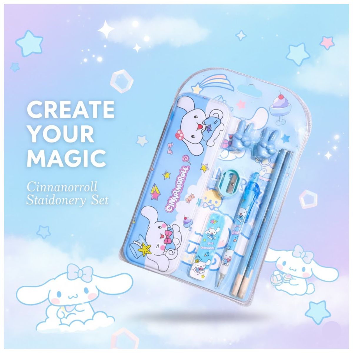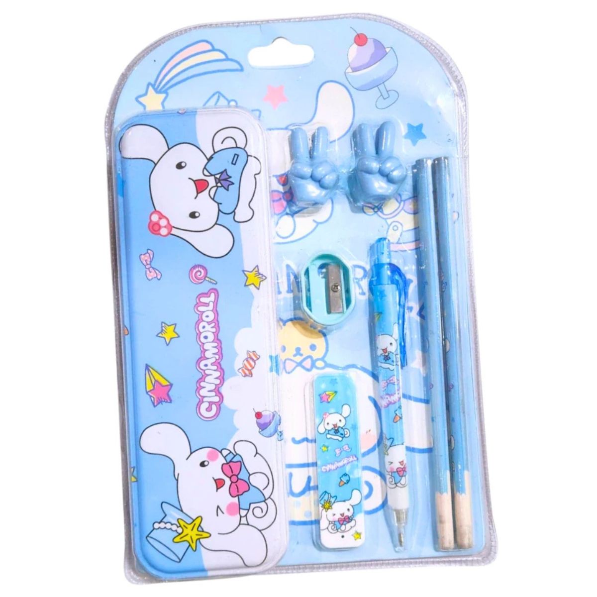 ¡Todo lo que necesitas para tu escritorio en un solo lugar! Este Set 8X De Librería Completo Cinnamoroll combina funcionalidad con un diseño encantador, ideal para estudiantes y amantes de la papelería que buscan mantener sus apuntes organizado, con estilo. Es el regalo perfecto para cumpleaños, el inicio de clases o para renovar tu espacio de trabajo con un toque de color.